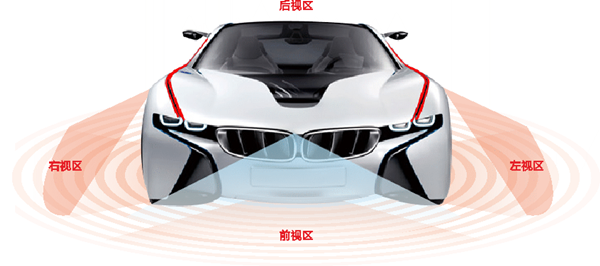 360度全景泊車影像通過安裝在車身前后左右的4個廣角攝像頭,同時采集車輛四周的影像,經(jīng)過圖像處理單元矯正和拼接后,形成一幅車輛四周的全景俯視圖,實時傳送到中控臺的顯示設(shè)備上(如DVD導(dǎo)航)。駕駛員坐在車中即可直觀地看到車輛所處的位置以及車輛周圍的障礙物,從容操控車輛泊車入位或通過復(fù)雜路面。
