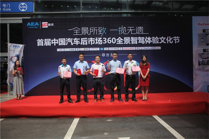在此次秋季展中還開(kāi)展了“首屆中國(guó)汽車(chē)后市場(chǎng)360全景智駕體驗(yàn)文化節(jié)”,深圳道可視科技有限公司劉經(jīng)理(左四)出席文化節(jié)開(kāi)幕。