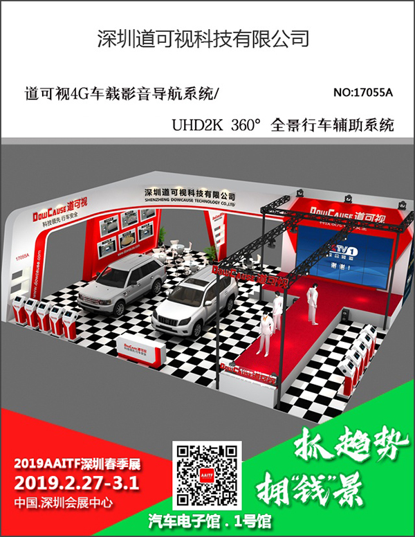 值此辭舊迎新、2019新年開春之際,道可視將攜旗下道可視4G車載影音導航系統(tǒng)、UHD2K 360°全景行車輔助系統(tǒng)等360°全景產(chǎn)品,參展將于2019年2月27日~3月1日,在深圳會展中心舉辦的2019AAITF深圳春季展?。ㄒ韵潞喎Q深圳春季展)