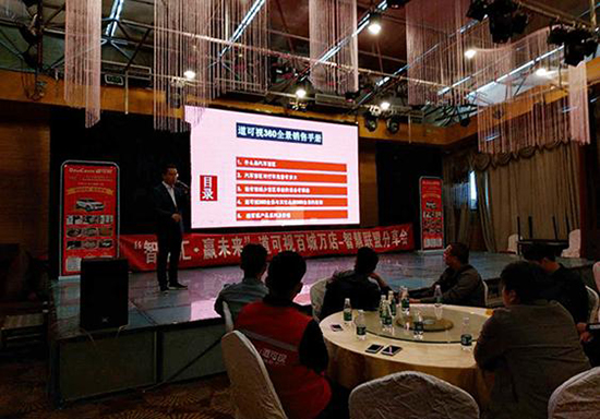 道可視代理商鄭州云游汽車(chē)銷(xiāo)售有限公司趙總率先進(jìn)行道可視智慧聯(lián)盟店政策的主題講演,他表示,2019年道可視將在全國(guó)各省地級(jí)市舉辦多場(chǎng)招商會(huì),共建立超4000家智慧聯(lián)盟店,他從門(mén)店產(chǎn)品的售前準(zhǔn)備、售中執(zhí)行、售后服務(wù)三個(gè)層面進(jìn)行了更細(xì)致化的闡述。