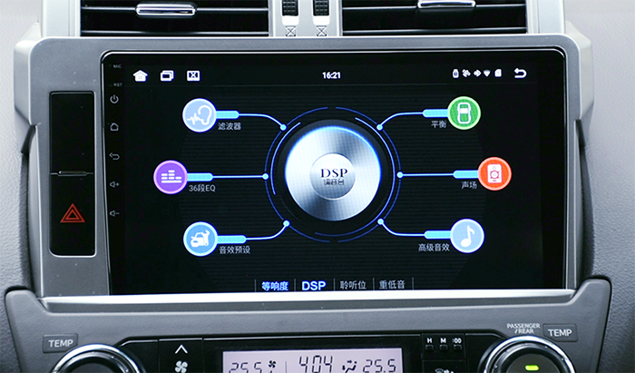 道可視S3+音樂車機(jī)采用的是前裝車規(guī)級(jí)高端版24位DSP模組,以主板芯片內(nèi)置集成的方式融合其中,沒有了傳統(tǒng)DSP的外置盒子,避免了盒子需要考慮放置在何處的問題。只需按照大屏車機(jī)的安裝方式安裝完成即可。