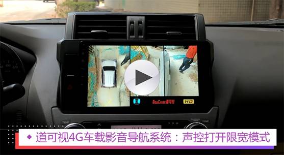 三維限寬模式:在此模式下,車主能輕松直觀的查看車身與障礙物的距離。以道可視推出的搭載了360°全景輔駕的“4G車載影音導航系統(tǒng)”為例,可以通過語音聲控“打開全景”讓中控屏呈現360°全景畫面。在打開全景功能后,再一次發(fā)出“打開全景”的聲控指令,就可以切換到“三維限寬模式”,幫助用戶順利的通過狹窄路段。