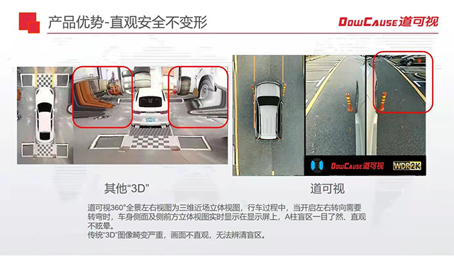 道可視360°全景中的通過“倒車影像”+“精準輔助線”的方式,精準計算出行車軌跡,顯示車輛泊車時車身所經(jīng)過的位置,幫助司機準確入庫,無論是倒車入庫,還是側(cè)位泊車,小白也能一步到位。