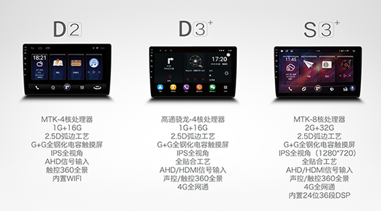 道可視4G車載影音導(dǎo)航系統(tǒng)D2、D3+、S3+的集體亮相也是一大亮點,2.5D弧面屏、IPS全視角高清大屏、G+G觸摸屏的加入,擁有更清晰流暢的畫質(zhì)和更強的影像播放顯示,彰顯不凡氣質(zhì)。