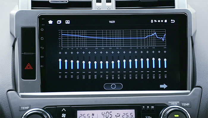 前文提到,道可視S3+音樂車機(jī)采用的是前裝車規(guī)級(jí)高端版24位DSP模組,它擁有36段EQ調(diào)節(jié),對(duì)于懂得調(diào)音的車主而言,它提供了可針對(duì)各個(gè)音域進(jìn)行調(diào)節(jié)的專業(yè)操控。
